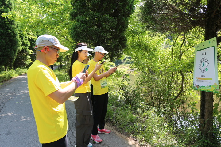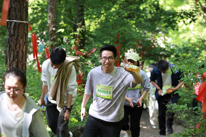 4月26日,徒步爱好者在活动现场拍照留念。(范保燕 摄)