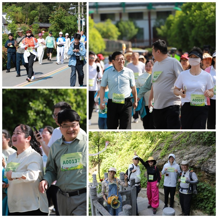 4月26日,行进中的徒步爱好者(拼版图片)。(范保燕 摄)
