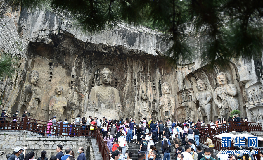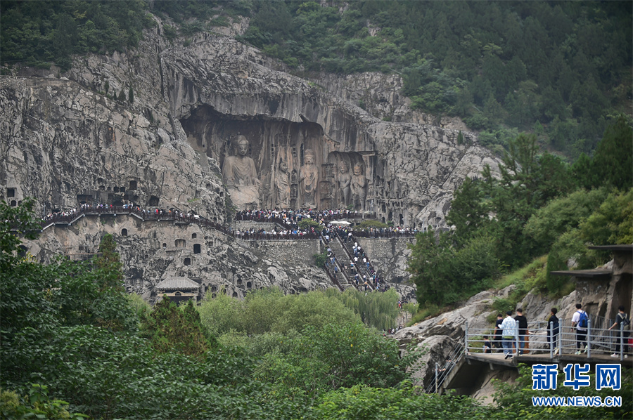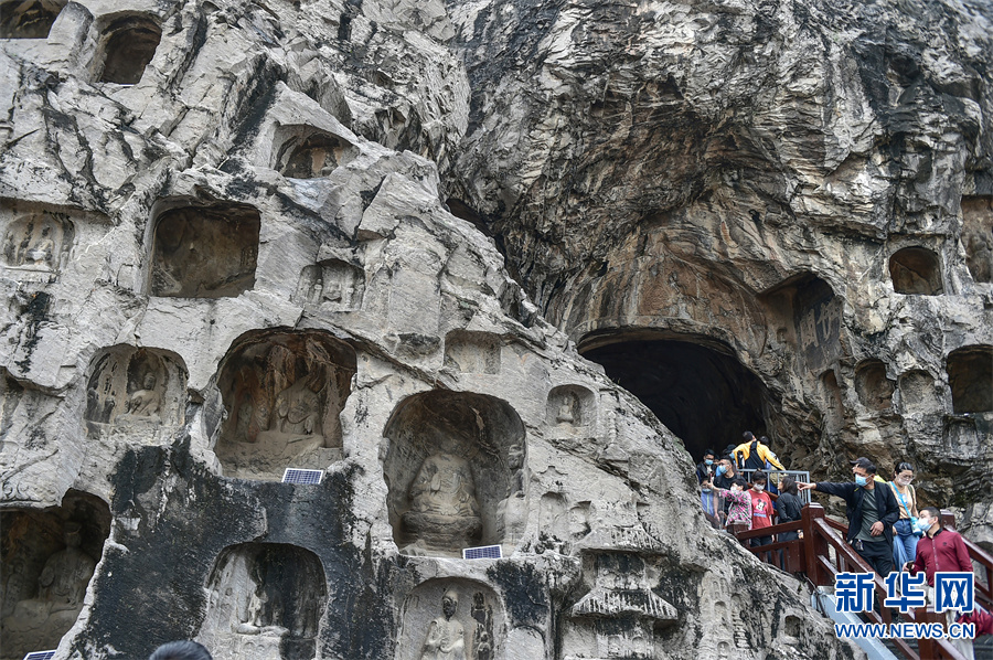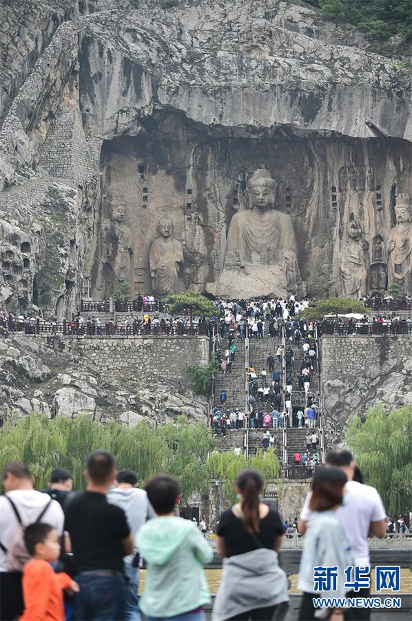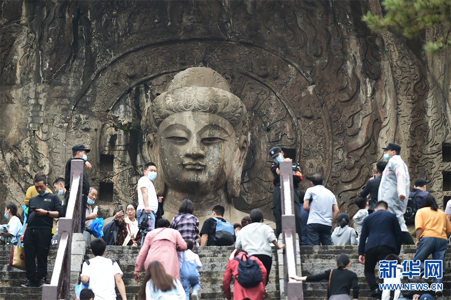 国庆长假期间,众多市民和游客来到世界文化遗产河南洛阳龙门石窟,领略千年石窟的独特魅力,陶醉于历史文化遗产的美妙意境中。新华网发(黄政伟 摄)