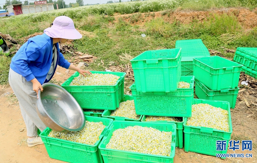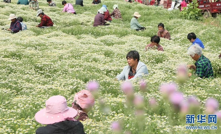 近年来,河南省洛阳市汝阳县大力发展特色种植产业,积极支持农民种植婺源黄菊、黄山贡菊、昆仑雪菊等经济作物,助力乡村振兴。新华网发(康红军 摄)