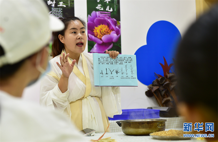 6月5日,洛阳市隋唐城遗址植物园研学课堂上,老师在讲解关于“芒种”的知识。