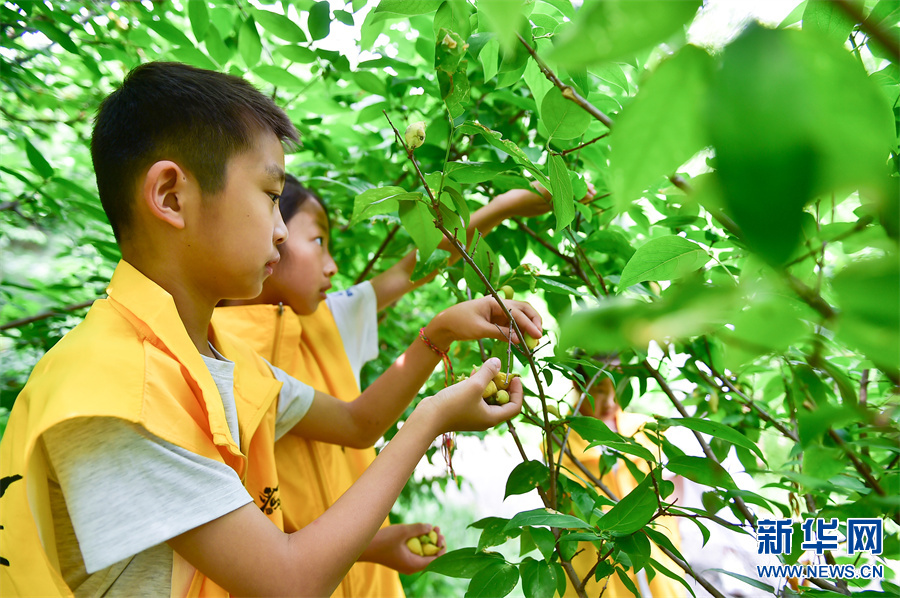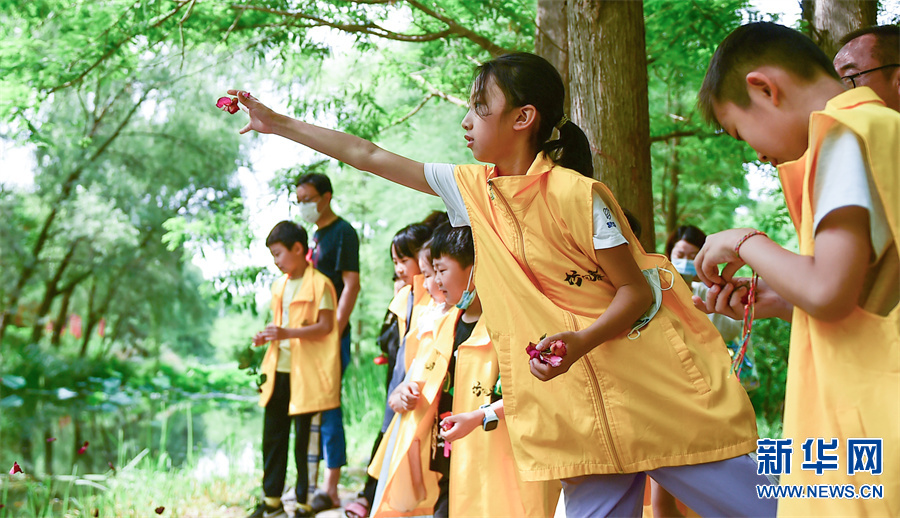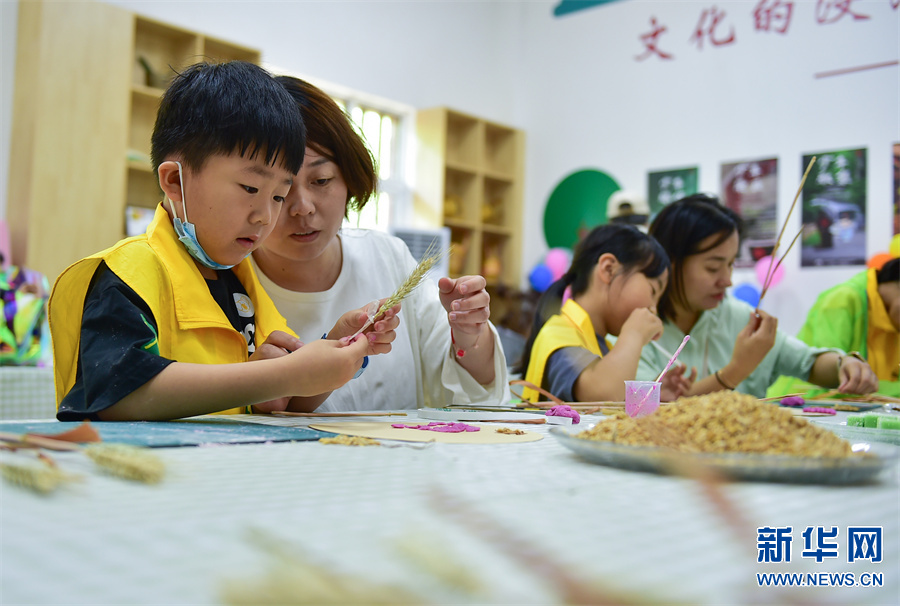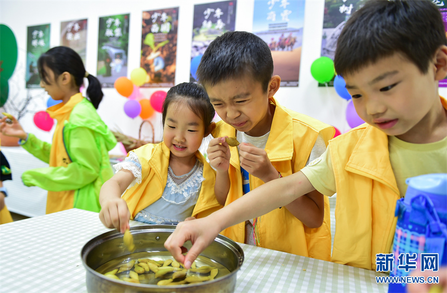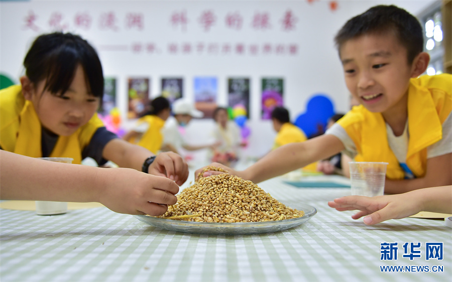研学课堂上,孩子们通过体验“送花神”“收种”“安苗”“煮梅”等“芒种”习俗和知识,体验耕种劳作之苦,感受优秀传统文化的独特魅力。新华网发(黄政伟 摄)