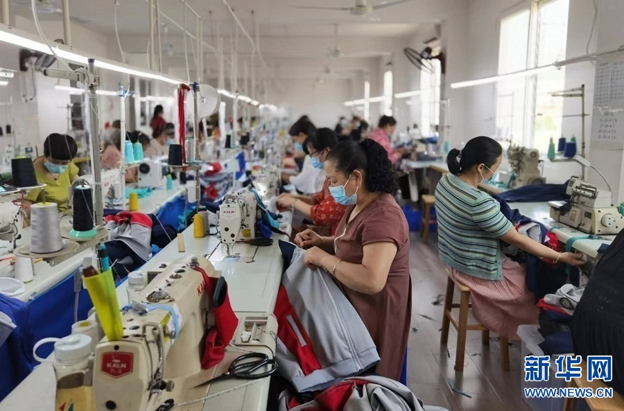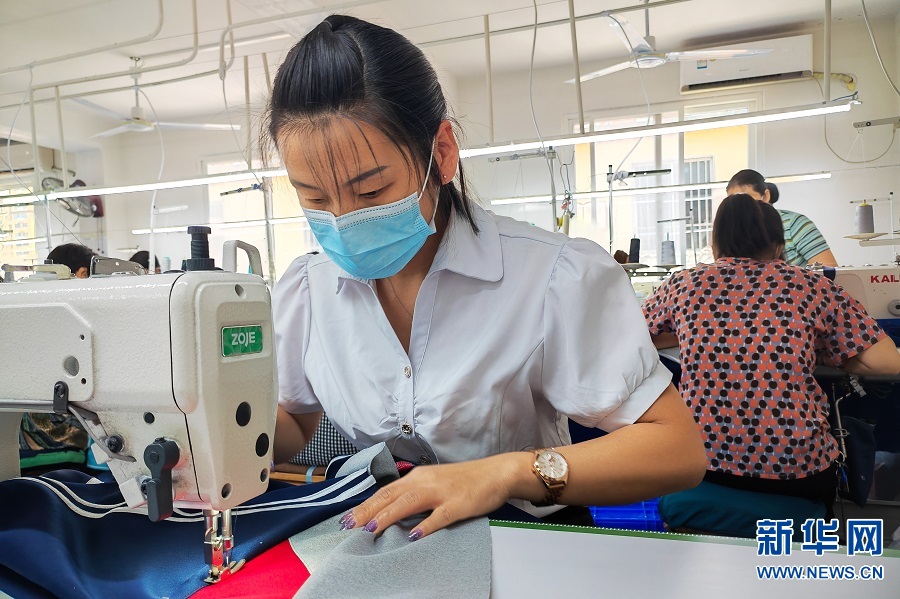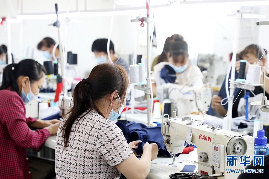 近年来,南阳市宛城区发挥资源优势,积极发展服装产业,带动群众实现就近、就地就业。新华网发(吴双 摄)