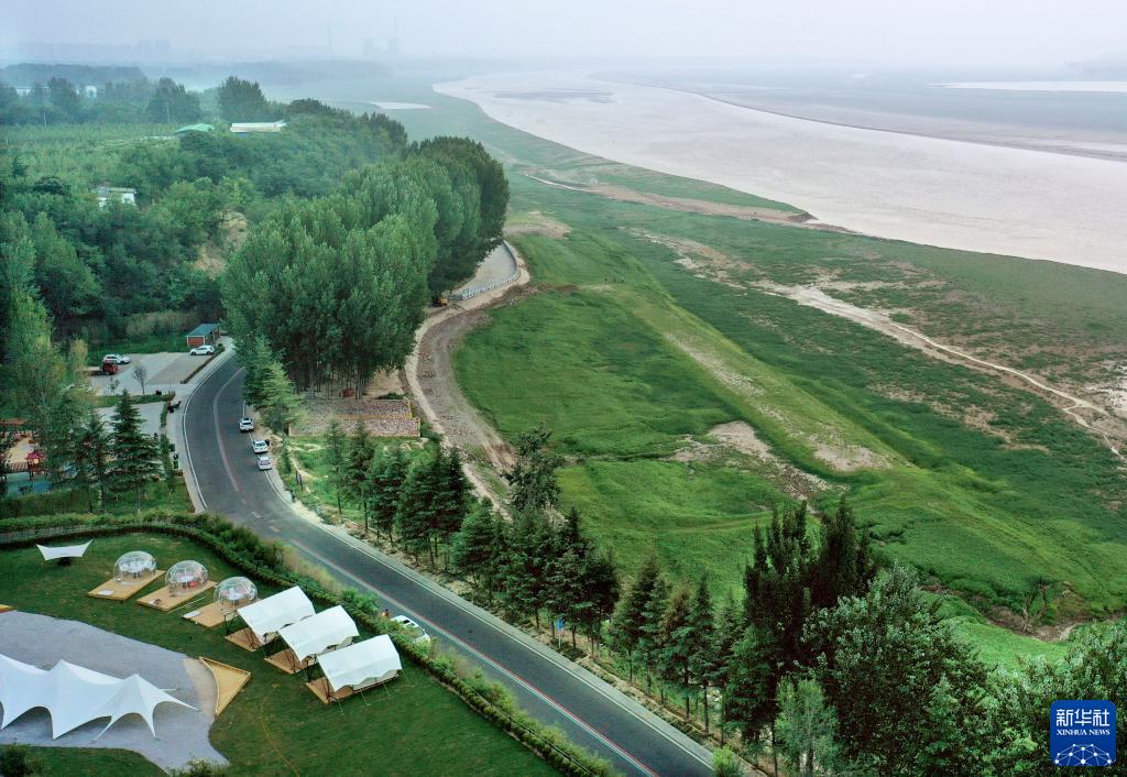 这是8月11日在河南省洛阳市孟津区拍摄的黄河生态廊道(无人机照片)。新华社记者 李安 摄