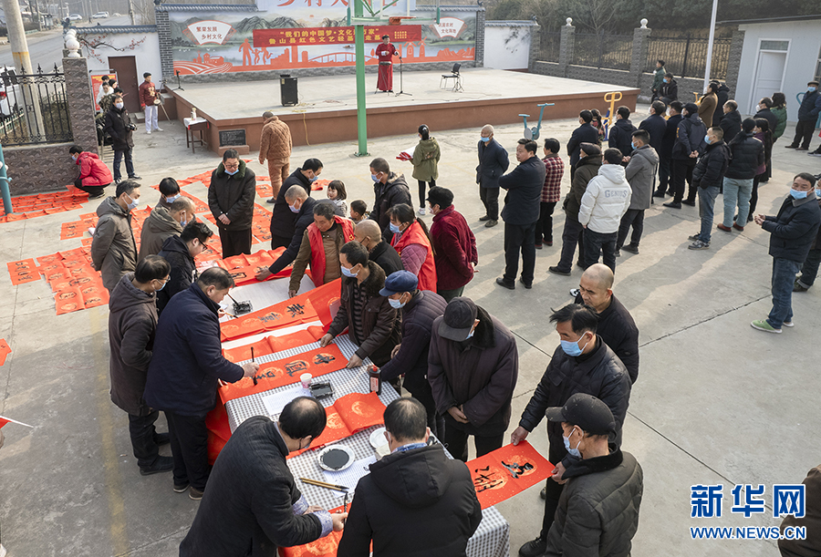 1月11日,河南省平顶山市鲁山县下汤镇西许庄村文化广场,“我们的中国梦——文化进万家”2023年书法家义务写春联公益活动现场。新华网发(何进文 摄)