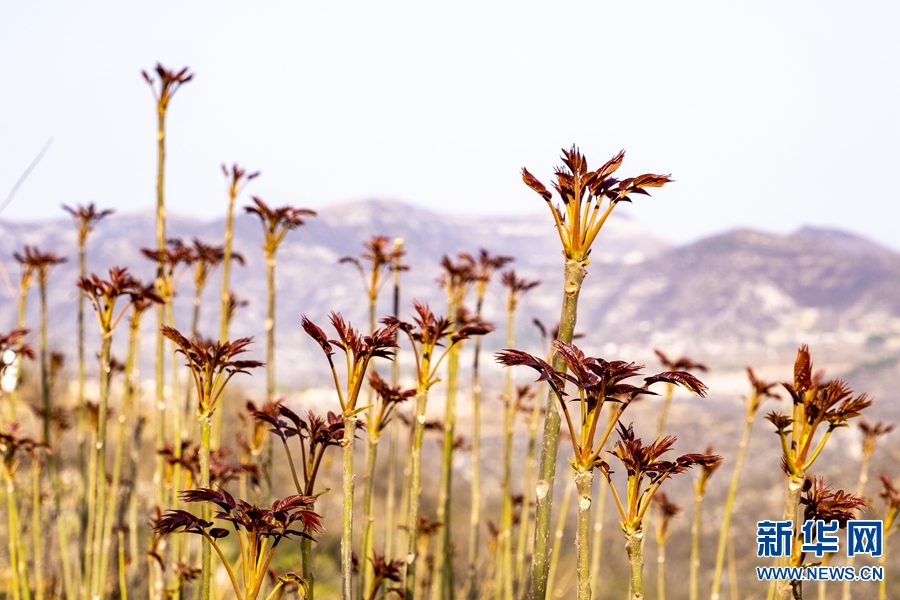 4月2日,在河南省鹤壁市鹤山区姬家山乡王家辿村,野生的红油香椿进入了采摘期。