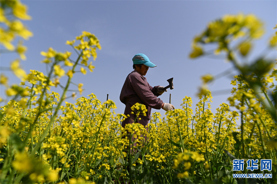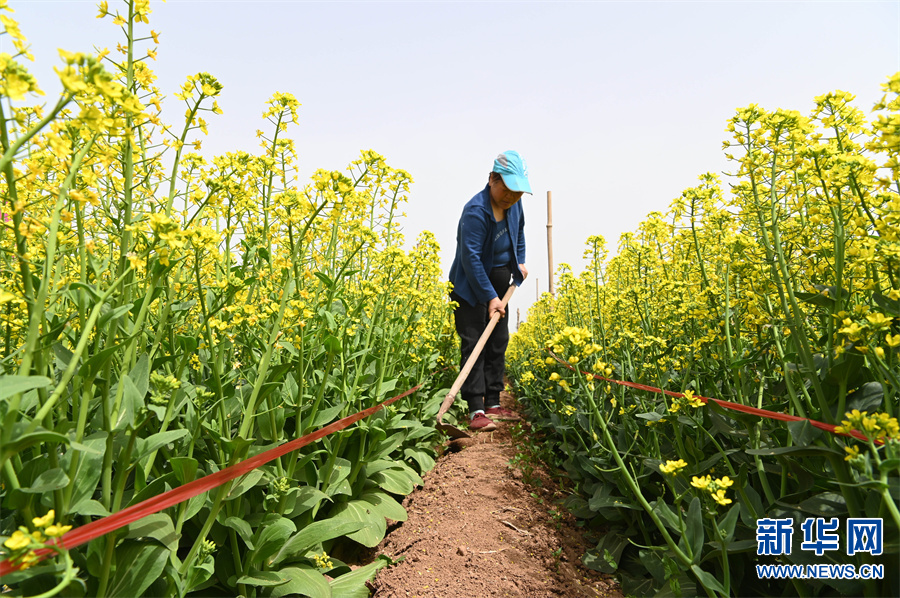 时下,春光明媚,万物生长,河南省沁阳市蔬菜制种基地的菜花竞相绽放,农民在花海中进行除草、授粉等工作,一派繁忙景象。