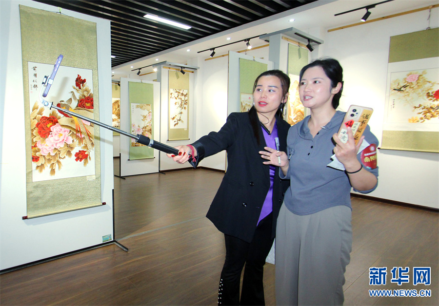 5月10日,河南省南阳市美术馆,工作人员正在进行网络直播。