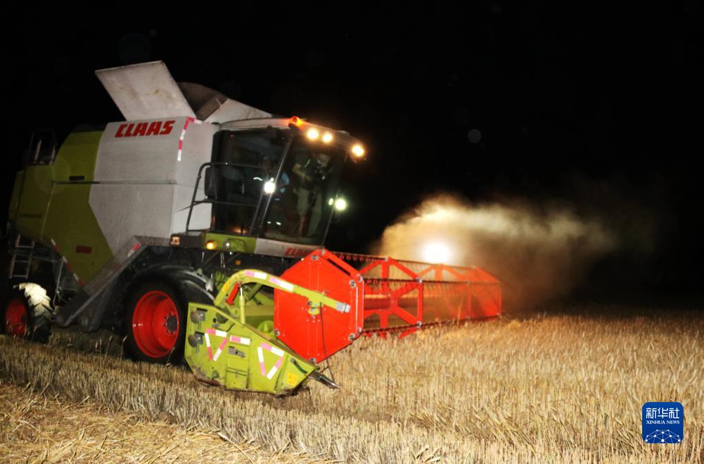 6月1日晚,河南省开封市尉氏县门楼任乡马家村的三夏服务队在为群众抢收小麦。新华社发(李新义 摄)
