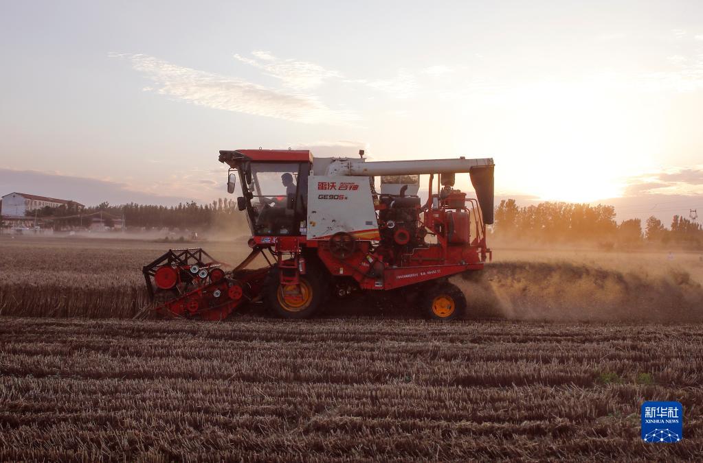 6月1日傍晚,河南省开封市尉氏县门楼任乡马家村的“三夏服务队”在为群众抢收小麦。新华社发(李新义 摄)