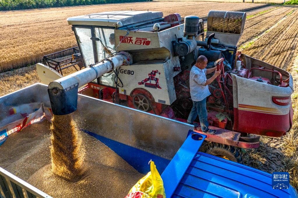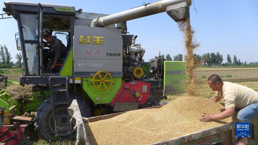 6月1日,河南省开封市祥符区范村乡许墩村农民在田间收小麦。新华社发(李俊生 摄)