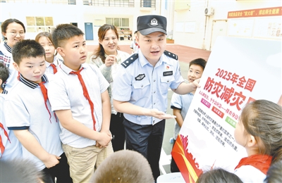 5月12日是第17个全国防灾减灾日,市公安局金水分局人民路派出所民警化身“安全教官”,走进辖区工人新村第一小学,为师生们开设“安全必修课”(如图),以实际行动筑牢校园安全防线。