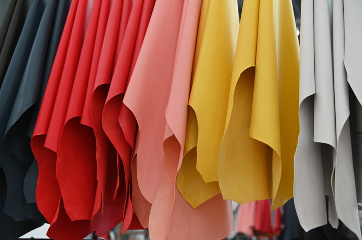 图为隆丰革乐美时尚有限公司为某国际知名品牌提供的羊革样品(杨帆 摄)