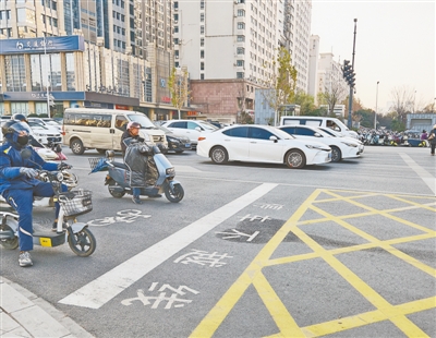 2024年12月24日,郑州市公安局公安交通管理局在花园路与国基路、紫荆山路与东大街、紫荆山路与航海路、未来路与航海路、中州大道与S312、中州大道与三全路等路口试点推行非机动车停车线后移管理举措。