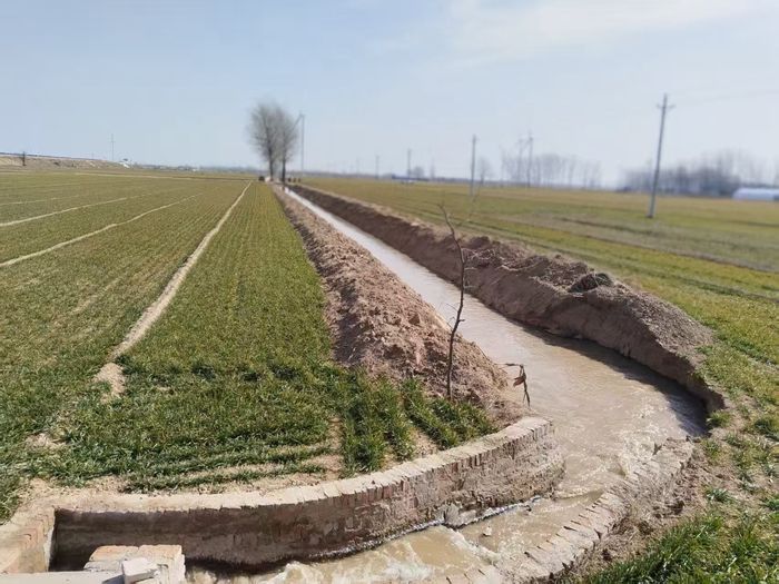 往年,由于农田里的沟渠又窄又小,无法引入黄河水,当地小麦春灌主要依赖地下水。一到春灌时节,沟边的村道上挤满了抽水的机器,有的要扯上几十米甚至上百米的输水带,春灌浇地不仅成本高,而且费时费力。