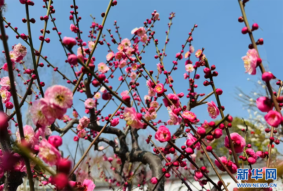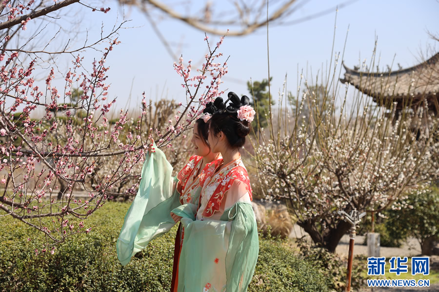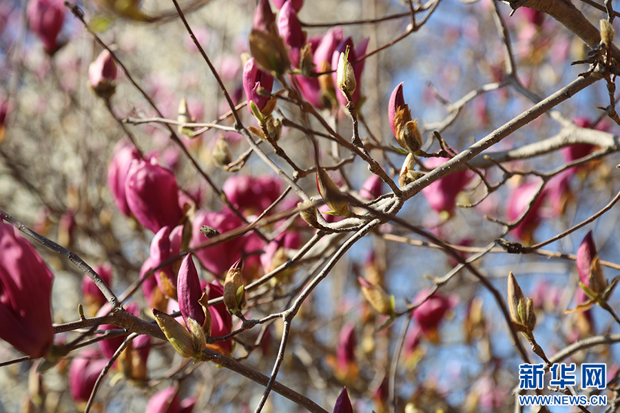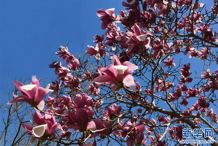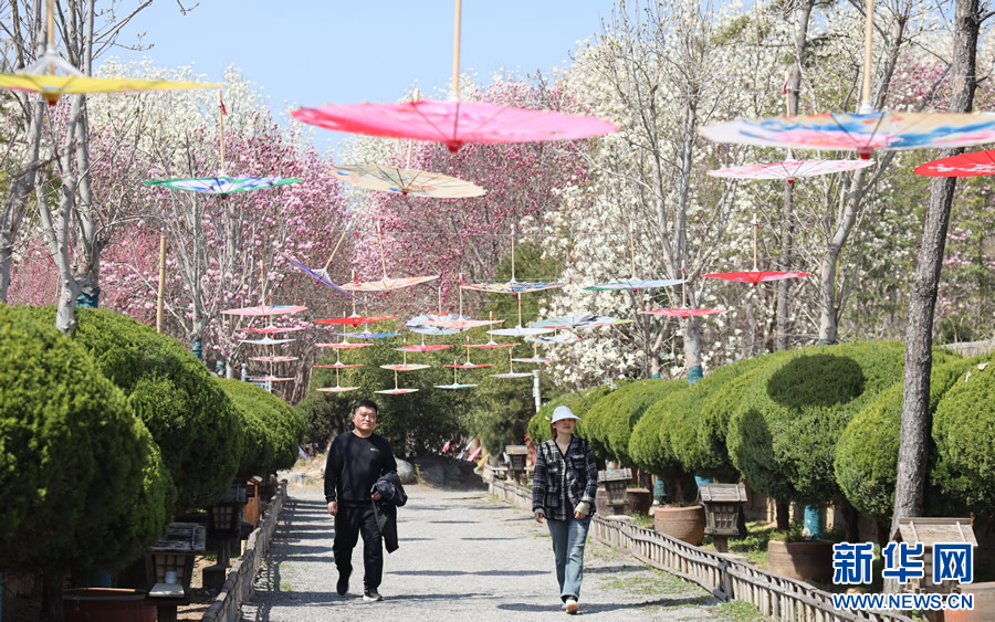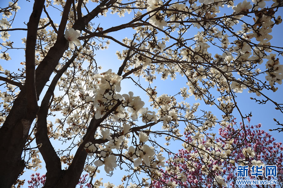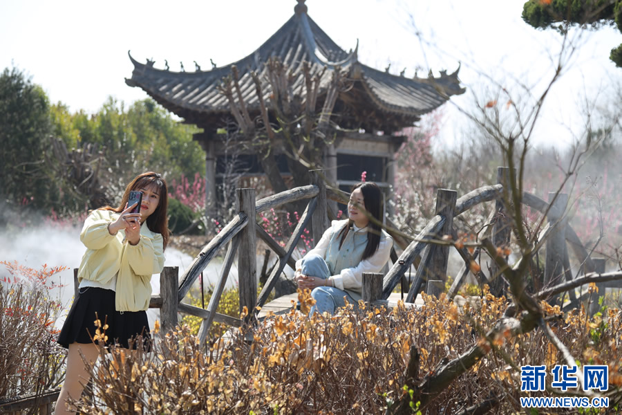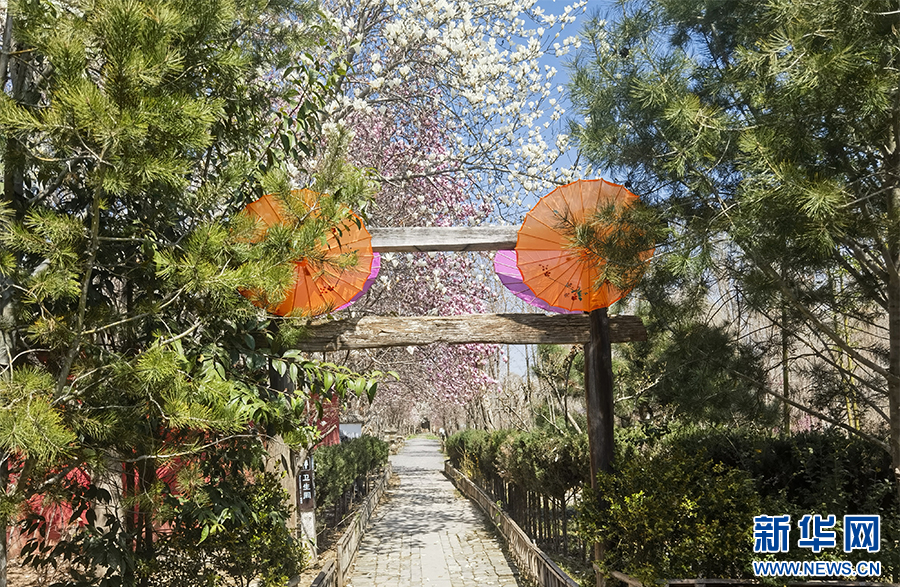 3月20日,漫步在河南省许昌市鄢陵县的唐韵小镇,玉兰花、红梅花竞相绽放,散发出幽幽清香,吸引不少游客前来赏花游玩,乐享春日美好时光。新华网发(孙小媛 摄)