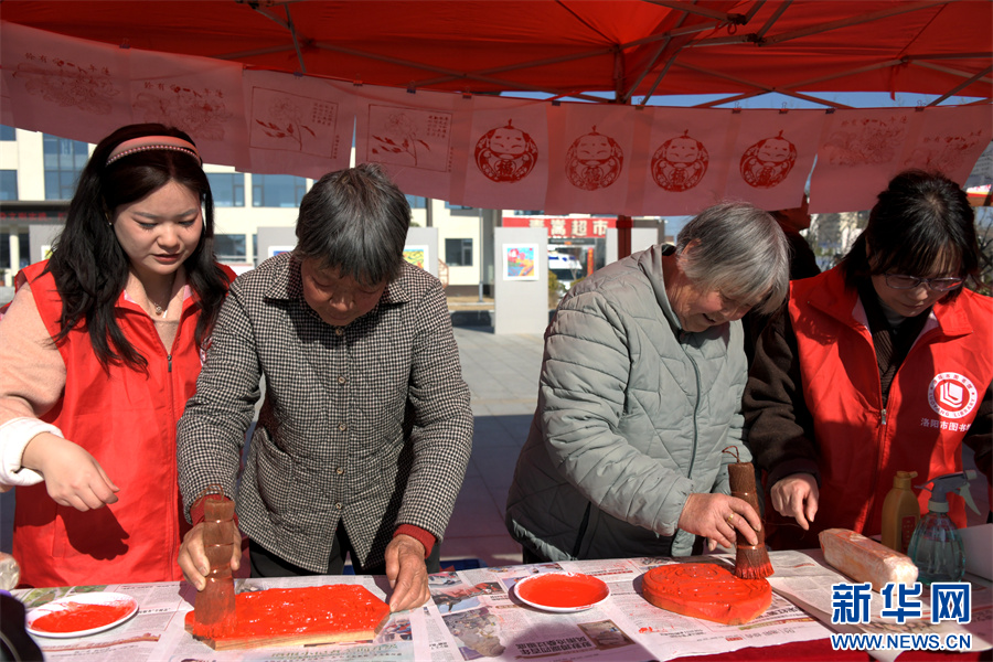 3月20日,洛阳嵩县,群众在体验传拓。