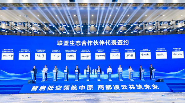图为郑州市低空经济产业联盟单位签约仪式现场。