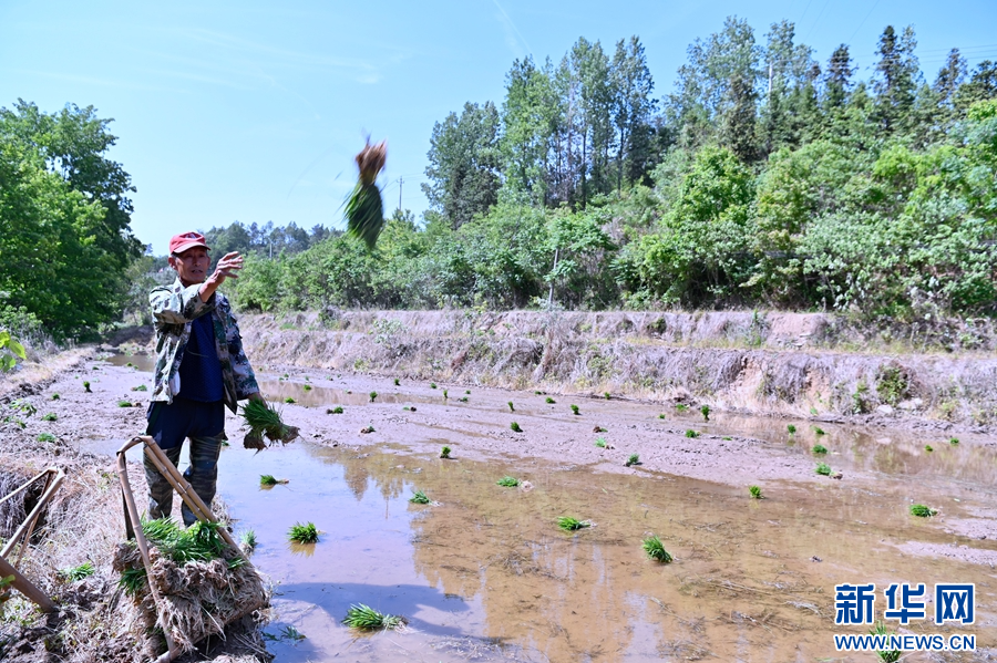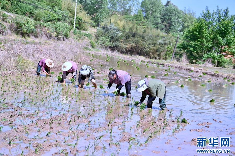 田间好风光,农时催人忙。连日来,在河南省新县的田间地头,农民们正抢抓农时,在水田里进行拔秧、抛秧、插秧等作业,一派繁忙的景象。新华网发(王丽君/文 焦汉平/图)