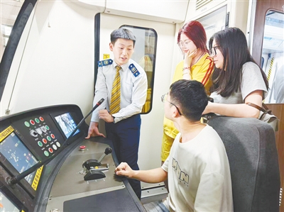 同学们走进地铁驾驶室,亲身感受轨道交通的精密运作