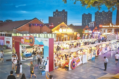红砖斑驳,街区“焕”新。在场景营造、活动推动、产品助力等要素的推动下,市民群众的“夜消费”逐渐由散落在家门口的夜市摊,走向了集潮玩、音乐、美食、文创为一体的现代化商业街区,这不仅推动着居民消费习惯的改变,也为经济增长注入了夏夜“热动力”。