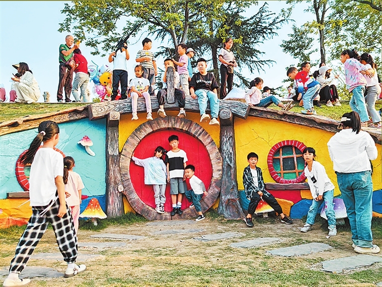 平顶山市在暖气管道和道路升级改造时,利用湛河河堤边坡地形,修建“精灵小屋”、滑梯等设施,将城市“边角空间”转化为全龄友好的休闲驿站。石潮 摄