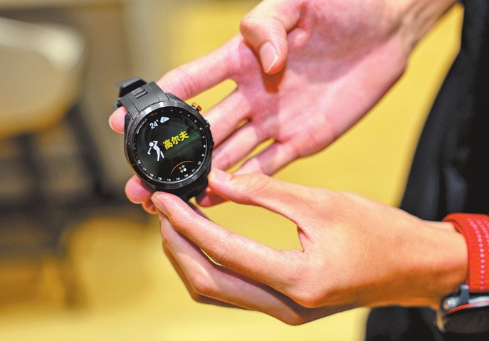 营业员在介绍体育手表功能。