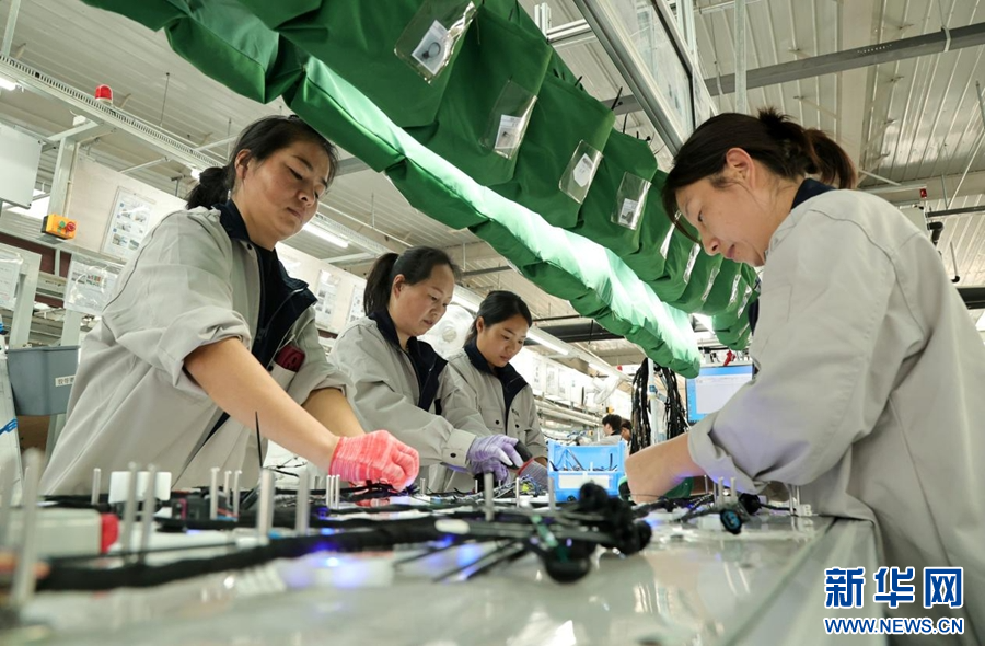 11月26日,周口市淮阳区,豪达汽车配件(周口)有限公司车间内,工人们正在整理成品线束。苏雪松 摄