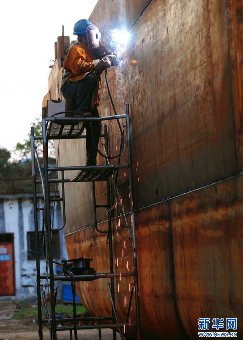 11月26日,在信阳市淮滨县造船园区,工人正在进行电焊作业。邱彦文 摄