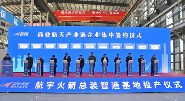 11月27日,航宇火箭总装智造基地投产仪式在河南鹤壁举行。该基地建筑面积约2万平方米,配备国内先进的火箭总装平台与高精度测试设备,具备年产20发中型运载火箭能力,年产值预计突破30亿元,填补了河南省商业火箭总装测试能力的空白。