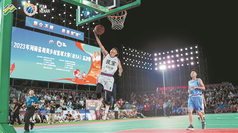 9月23日晚,河南省和美乡村篮球大赛(村BA)总决赛在灵宝市焦村镇篮球体育公园举行。 本报记者 聂冬晗 摄