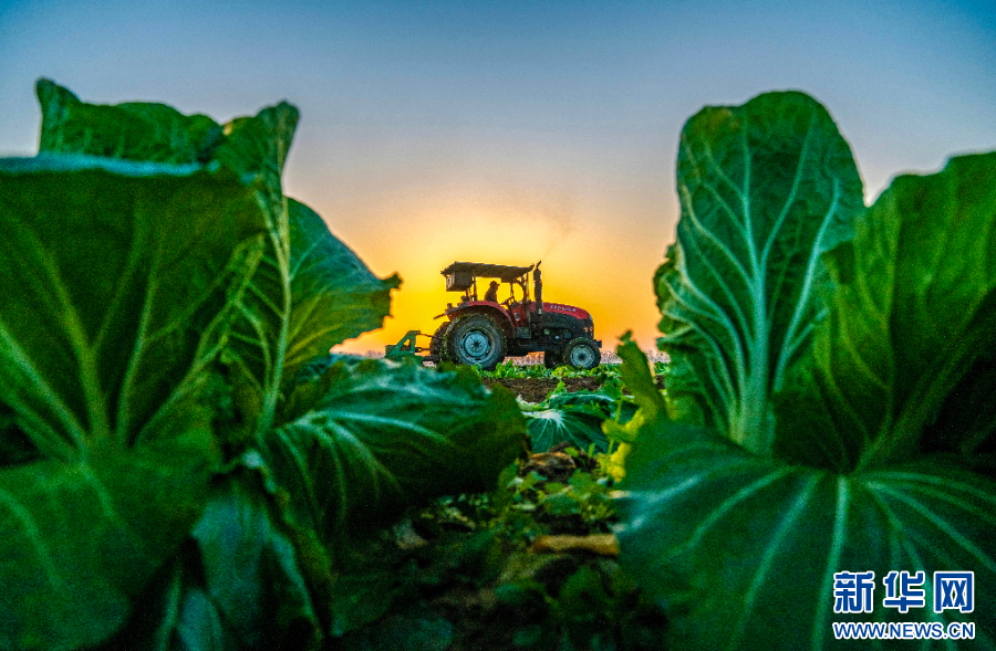 河南省商丘市夏邑县会亭镇张桥村农民驾驶农机在旋耕白菜收获后的耕地,为建设西瓜大棚做准备。
