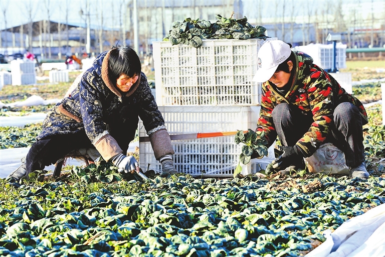 新乡县丰禾农牧合作社社员在分拣趴地菠菜。 本报记者 王铮 摄