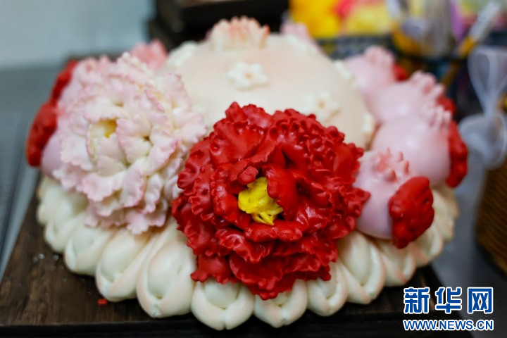 1月22日,安阳市内黄县一家手工花馍坊内刚刚蒸制好的手工花馍。(刘肖坤 摄)