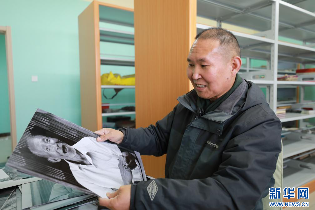李俊生展示为修渠老人拍摄的照片。新华社记者 杨静 摄