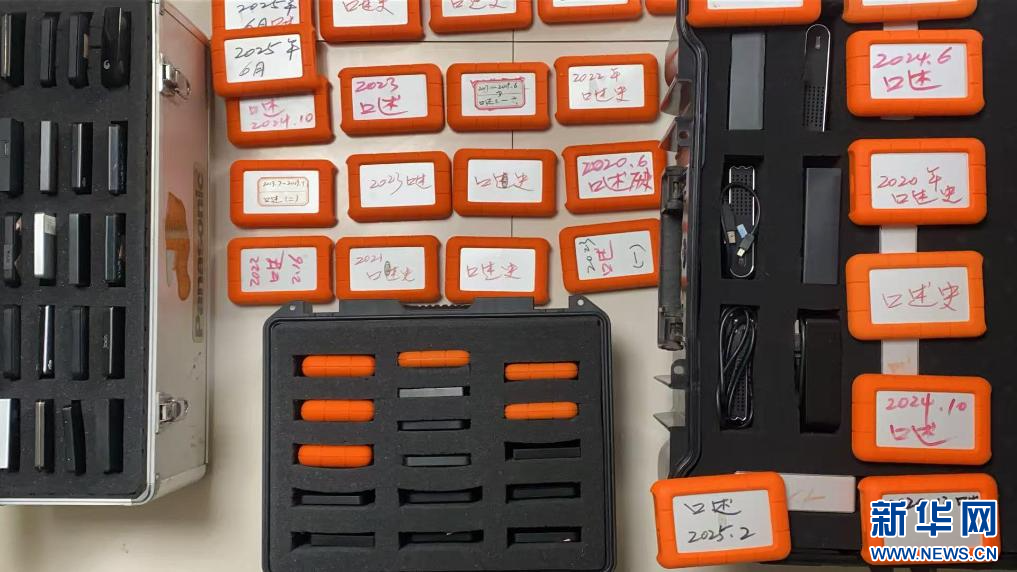 这是李俊生为修渠老人拍摄口述史的硬盘。新华社发