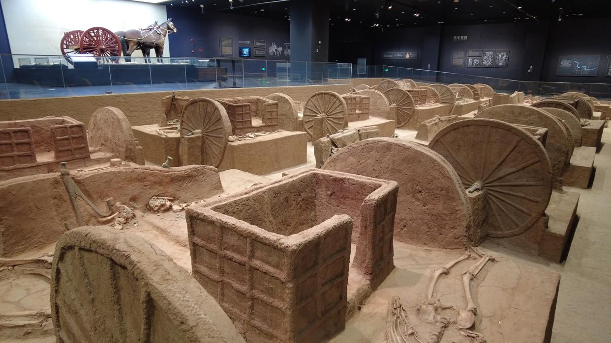 外观似青铜巨鼎的殷墟博物馆中,不少游客慕名而来,走进殷墟车马遗迹展厅,一睹3000多年前商王朝“车辚辚、马萧萧”的壮观景象。