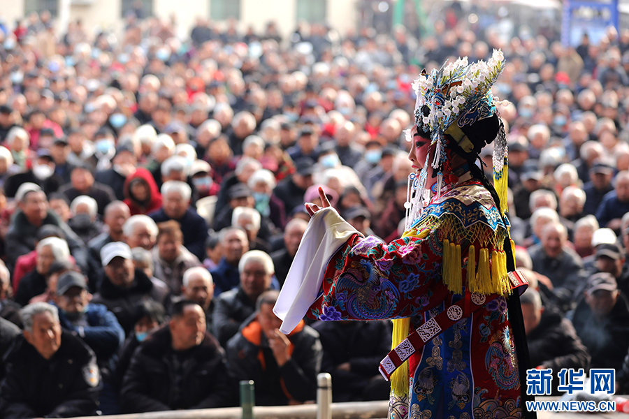 2025年2月18日,演员在河南省焦作市温县武德镇村文化中心表演豫剧《下陈州》。新华社发(徐宏星 摄)