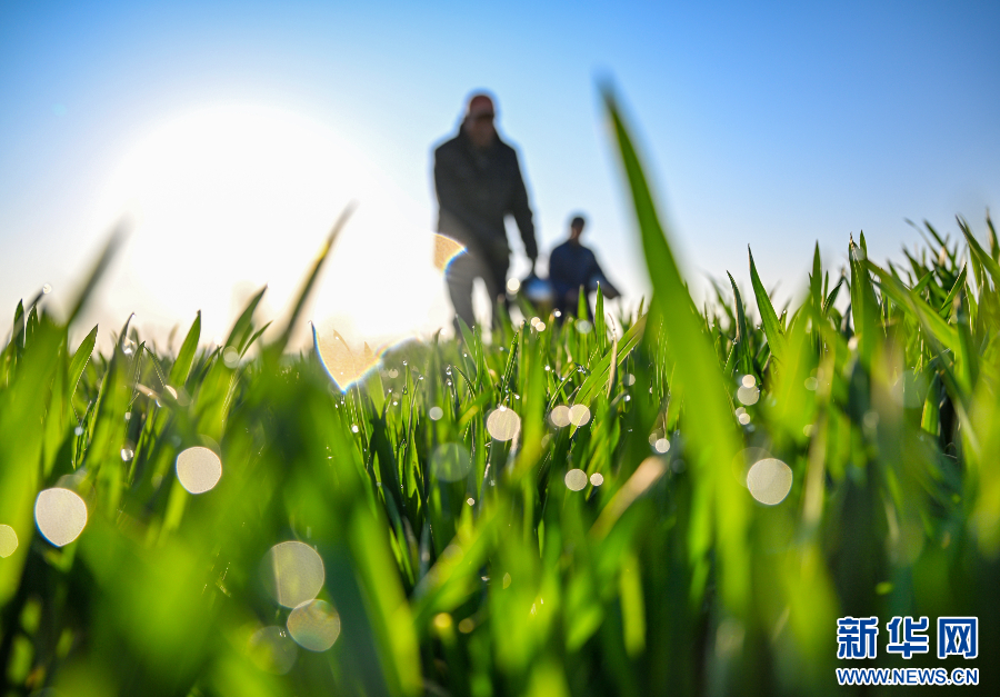 2025年3月20日,在河南省商丘市夏邑县会亭镇郭吕庄村,村民在麦田里施肥。新华社发(王高超 摄)