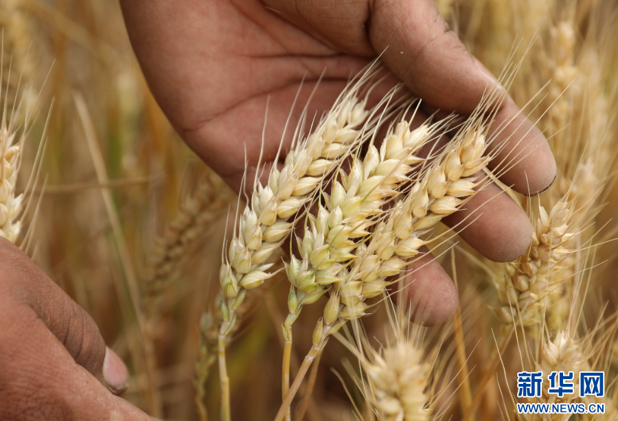 2025年5月13日,河南省平顶山市宝丰县闹店镇李官营村村民在查看小麦成熟度。新华社发(何五昌 摄)