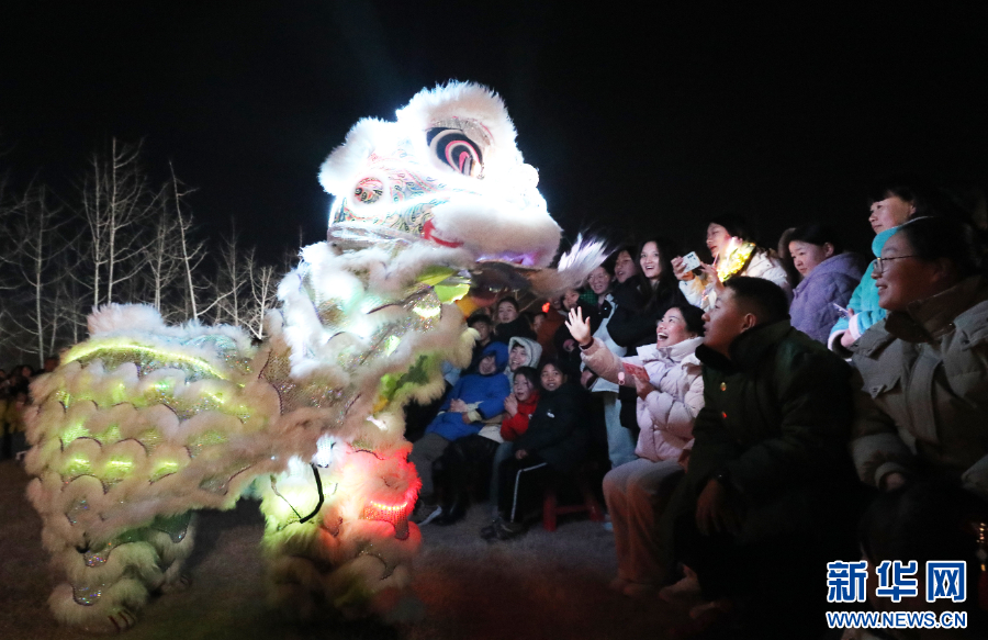 2025年2月12日,在河南省夏邑县博物馆广场,民间艺人在闹元宵民俗展演活动中表演。新华社发(苗育才 摄)