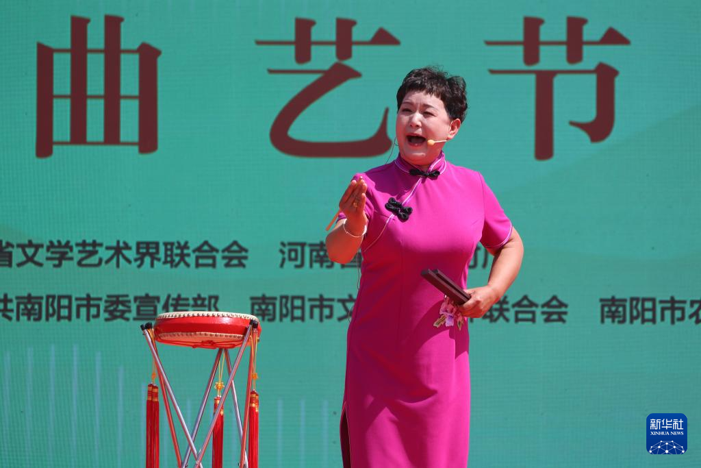 4月18日,在河南省南阳市社旗县赊店古镇市民广场,演员在赊店书会系列展演活动上表演节目。